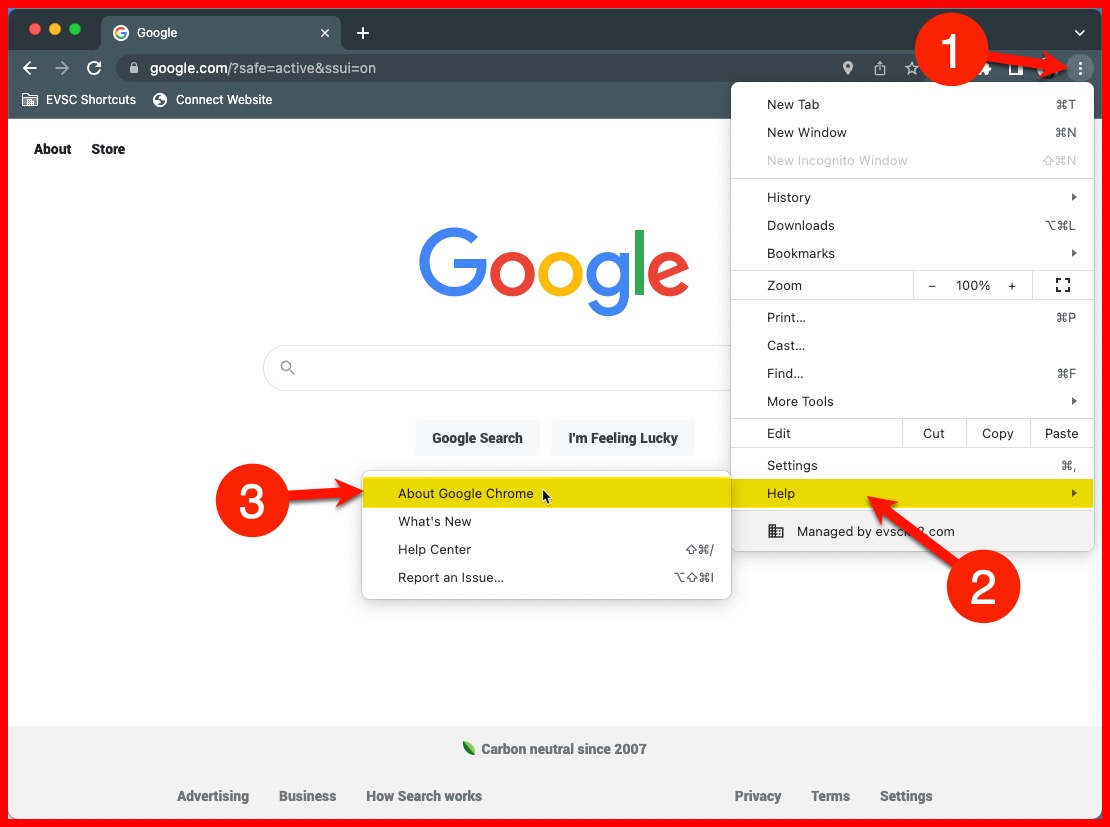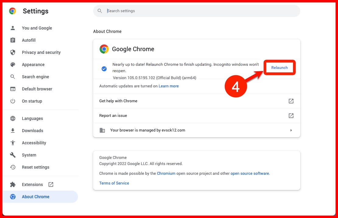 NOTE: You can also get there by typing chrome://settings/help into the address bar.