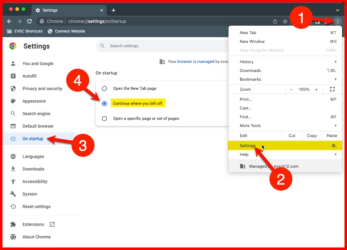 This setting allows you to have Chrome reopen all the tabs and windows you currently have open when starting up Chrome.